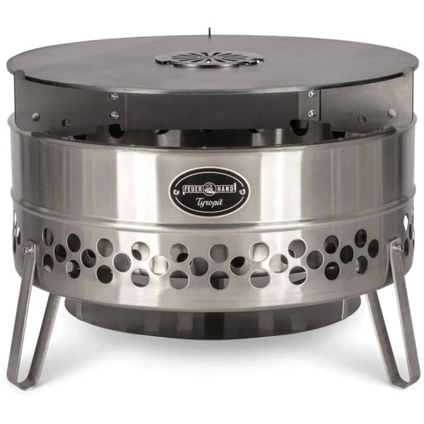Die Feuerhand Grillplatte pypla2 verwandelt die Feuertonne Pyron oder die Feuerschale Tyropit in eine Kochstation und ermöglicht mehr als nur Grillen. Auf der massiven 6mm starken Stahlplatte kann man mit der Hitze nach Herzenslust aromatisch braten. Durch die gleichmäßige Hitzeverteilung lassen sich verschiedenste Köstlichkeiten auf der Platte zubereiten. Neben Fleisch eignet sie sich besonders gut für Fisch und Meeresfrüchte. Aber auch Burger, Gemüse, Desserts oder Frühstück mit Spiegelei, Pancakes und Speck gelingen auf der Grillplatte im Handumdrehen. Hohe Temperaturen und die indirekte Hitze ermöglichen ein saftiges Grillergebnis mit ansprechender Kruste. Der integrierte, abnehmbare Kochaufsatz in der Mitte sichert Eier, Würstchen und Co. gegen ein Abrutschen ins Feuer und dient zum Zubereiten von Eintöpfen, Beilagen oder Heißgetränken. So kann man die Hitze nutzen, um mit Freunden ganze Gänge auf der Grillplatte zuzubereiten. Die großzügigen Aussparungen versorgen die Feuertonne oder Feuerschale auch mit Kochgeschirr auf dem Aufsatz mit genügend frischem Sauerstoff, um das Feuer ordentlich brennen zu lassen. Außerdem ermöglicht die Aussparung in der Mitte des Aufsatzes ein sicheres Nachfüllen von Holz während der Benutzung. Mit dem dreiarmigen Trägergestell liegt die Grillplatte sicher auf der Feuertonne Pyron oder der Feuerschale Tyropit auf.Art.-Nr.: 100024969
