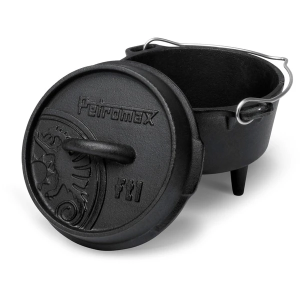 Der Feuertopf ft1 von Petromax eignet sich besonders für Soßen oder Desserts. Die Petromax Feuertöpfe, auch als Dutch Oven bezeichnet, sind ideale Begleiter für Draußen-Aktivitäten wie Reisen, Camping, etc. Mit ihnen garen Speisen, wie z.B. Fleisch und Gemüse, sehr schonend im eigenen Saft über offenem Feuer oder im heimischen Backofen. Der einzigartige Geschmack entsteht durch die konstante Rundumwärme im Topf. Die Deckel der Feuertöpfe können zudem auf Wunsch als Servierplatte oder Pfanne genutzt werden. Dank der vorbehandelten Oberfläche (seasoned finished) ist der robuste Petromax Feuertopf aus Gusseisen sofort verwendbar. Mit den Petromax Feuertöpfen kann man draußen leckeres und gesundes Essen für Familie und Freunde zubereiten.Art.-Nr.: 1532697