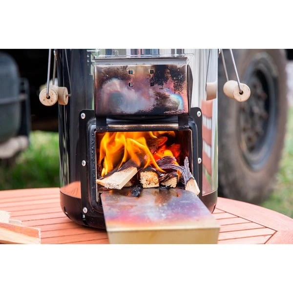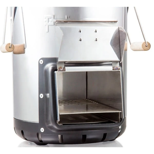Der Petromax Raketenofen rf33 kombiniert durch eine optimale Luftzufuhr wirkungsvoll den Kamineffekt und das Holzvergaserprinzip, womit eine extrem effiziente Verbrennung von Biomasse erreicht wird. Entscheidend sind dabei die L-förmige Bauweise von Brennmaterialzufuhr, Brennkammer und Kaminabzug. Holz, Tannenzapfen und Co. werden einfach über die praktische Ablage nachgeschoben, so dass sich das Feuer bestmöglich regulieren lässt. In der Brennkammer bleibt die Hitze auf einen kleinen Raum begrenzt, der durch das isolierte Gehäuse geschützt wird. So kann die aus dem Abzug entweichende Hitze im gusseisernen Oberteil gespeichert und zum Kochen genutzt werden. Der Raketenofen rf33 ergänzt die Draußen-Küche um einen soliden Kocher mit sparsamer Verbrennung. Er ist robust, langlebig und mit seinen Tragegriffen einfach zu transportieren.Art.-Nr.: 1533699
