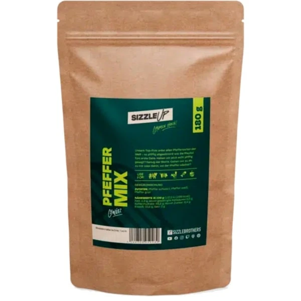 Pfeffer gehört wie ein gutes Salz zu den absoluten Grundlagen der klassischen Küche. Und natürlich darf er auch beim Grillen nicht fehlen. Sein pikant-fruchtiger Geschmack rundet viele Gerichte erst so richtig ab und sorgt für die nötige Stimmigkeit. Dabei gilt aber auch: Pfeffer ist nicht gleich Pfeffer. Es gibt ihn in zahlreichen Sorten, die sich nicht nur im Geschmack, sondern vor allem auch im Anbau und im Aussehen unterscheiden. Die SizzleBrothers haben bei ihrem Pfeffer Mix eine klassische Mischung gewählt: schwarzer, weißer und grüner Pfeffer. Die drei verwendeten Sorten haben sich über Jahre bewährt und überzeugen durch ihren leckeren Geschmack. Art.-Nr.: 1893353