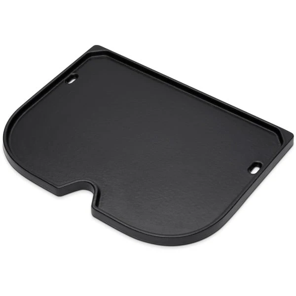 Die Weber Grillplatte 6611 aus porzellanemailliertem Gusseisen passt für den Weber Lumin Compact Elektrogrill. Mit dieser Grillplatte kann man noch mehr köstliche Gerichte zubereiten. Sie verwandelt im Handumdrehen die Oberfläche des Lumin Compact Grills in eine Plancha, so dass man morgens Pfannkuchen und Rührei und abends Gemüse und Fischgerichte zaubern kann. Dank der erhöhten Kanten fällt kein Grillgut herunter. Das Gusseisen verteilt die Wärme optimal, sorgt für gleichmäßig gegartes Grillgut und verhindert, dass etwas festklebt. Nach dem Essen lässt sie sich ganz schnell mit Wasser und Seife reinigen. Sie ersetzt die Hälfte des Grillrostes, hat zwei integrierte Fettablauföffnungen und eine Grifföffnung.Art.-Nr.: 1875588
